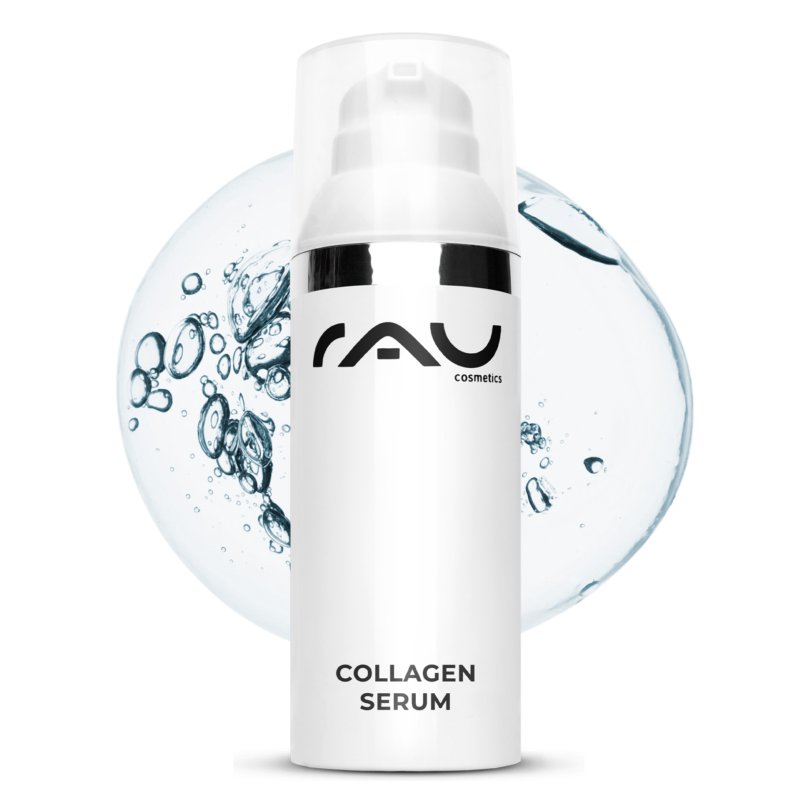 - Einige Tropfen Collagen Serum auf Gesicht, Hals und Dekollete auftragen